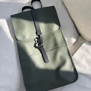 Backpack is cut from Rains' signature PU fabric, engineered for carrying strength, durability and a smooth feel.