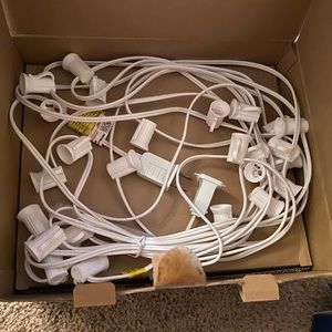 Waterproof string lights. Never used only opened to show size and what they would look like once put together. Perfect for anyone that decorates outside.
