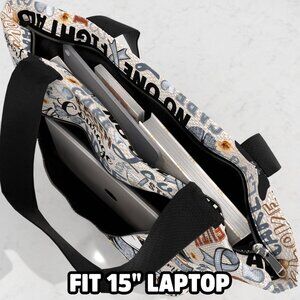 Features: Spacious design with dimensions of 15 x 14.5 x 5 inches, perfect for carrying your laptop, books, or everyday essentials. Durable double handles with an 11-inch length make it easy to sling over your shoulder or carry by hand. Multiple pockets, including a large front pocket fitting a 10-inch tablet, a zipper main compartment, zipper pocket, and an interior slipper pocket, help keep everything organized.