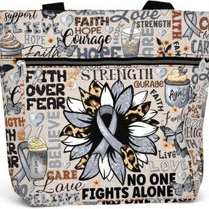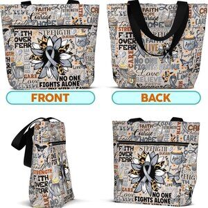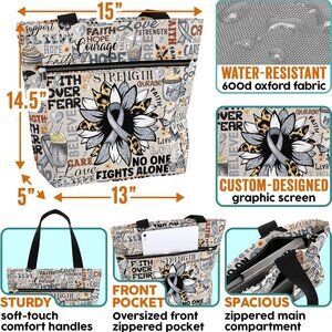 Waterproof Tote Bag Women Grey Support Awareness Gift Multiple Pockets