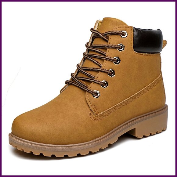 • **Style**: Classic lace-up ankle boot with round hard toe. Available in versatile colors including black, brown, and red plaid.
