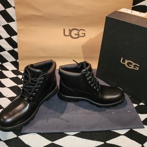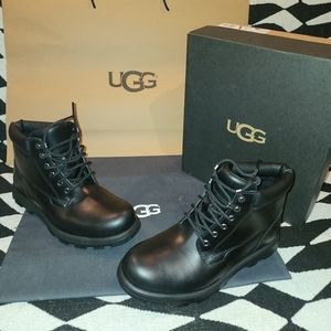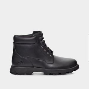 Reimagining a timeless workboot silhouette, the Stenton is a rugged style made with seam-sealed waterproof leather for enhanced protection from the elements. Featuring functional metal hardware, and comfortable collar padding, it's finished with our soft UGGplush™ wool blend and an ultra-durable Vibram® outsole for superior traction. Pair with jeans and a flannel, slacks and a military jacket, or any other look you can imagine. The possibilities are endless.