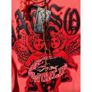 Watson Luxe Larger Than Life Hoodie Red Graphic Angels Size L NWT Streetwear