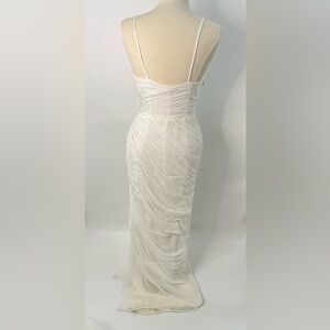 Watters 10 plunge draped mesh column 0739 gown white feminine