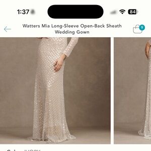 Watters Mia Long-Sleeve Open Back Sheath Wedding Gown