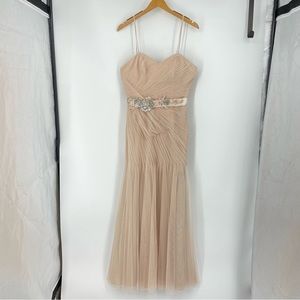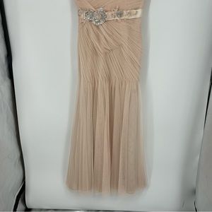 Watters & Watters Blush mermaid pleated belted 73281 allover lace mesh gown