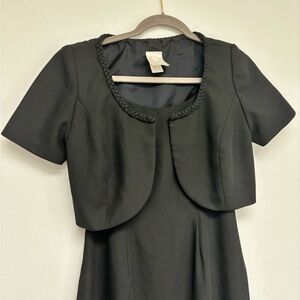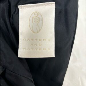 Watters & Watters black braided strap cropped short sleeve satin long Dress sz 6