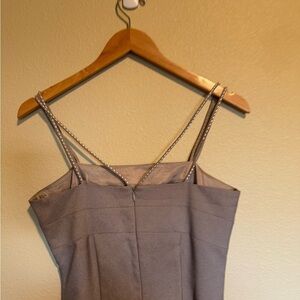 Watters and Watters Taupe Crepe Faux Peral Strap Maxi Bridesmaid Dress 6