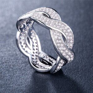 🎁Wave Crystal Zircon Romantic Iced Out Silver Plated Diamond Ring, UNVN1…