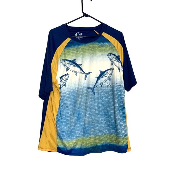 Wave Life Mens Size Large Knit Top Shirt Pullover Lightweight Blue Fin Tuna
