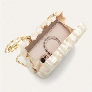 Wave Shell Acrylic Evening Clutch | Chic Party Purse with Detachable Chain