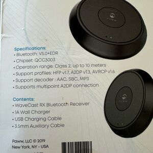 Wavecast RX Bluetooth Receiver in black. Features Bluetooth 5.0 and multiple device connectivity. New in package