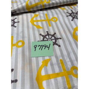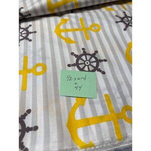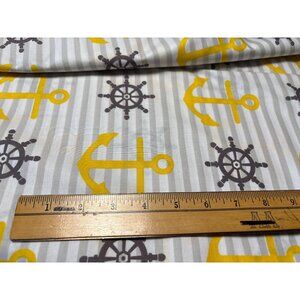 Waverly Anchors & Ship Wheels Nautical Fabric 1 yard + 6" x 44" Cotton Gray & Ye