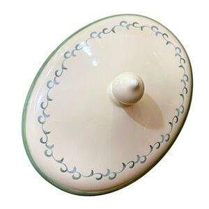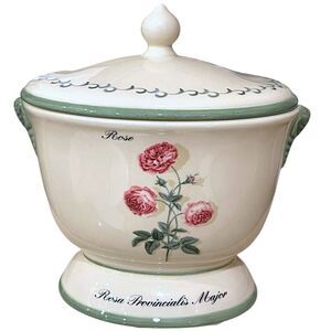 Add timeless charm and functionality to your space with this stunning cream and green lidded ceramic container by Waverly. Designed to elevate the elegance of your bathroom or bedroom, this versatile piece is as practical as it is beautiful. Use it as a trinket box, jewelry holder, keepsake container, or even a stylish money box. Remove the lid and it transforms into a unique indoor planteradding a touch of botanical grace to any room.