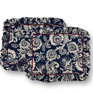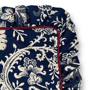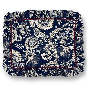 Waverly Floral Jacobean Ruffled Edge Pillow Sham Set Standard Blue Cream
