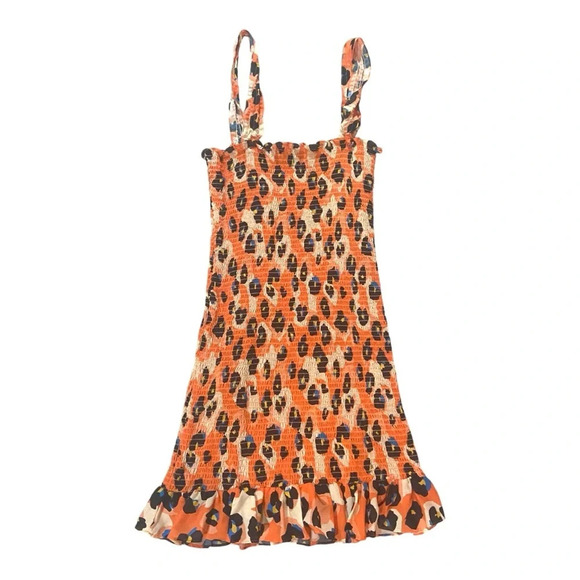Waverly Grey Smocked Leopard Print Bodycon Mini Dress Ruffle Trim Sz L