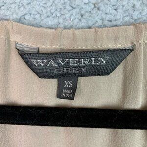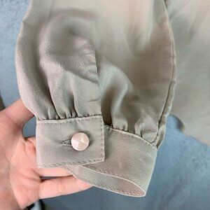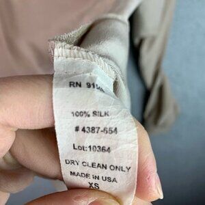 Waverly Grey Womens Blouse Beige Bishop Sleeve Keyhole Neck Ruched 100% Silk XS