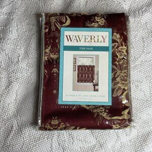Waverly Home Classic Curtain Valance Maroon Merlot Floral Cream Stripes NEW