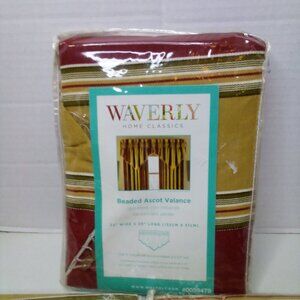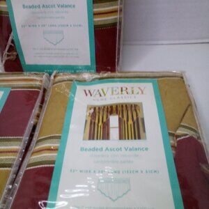 Waverly Home Classics Beaded Ascot Valance 52" x 20" Lot of 3 Gold Red Fringe