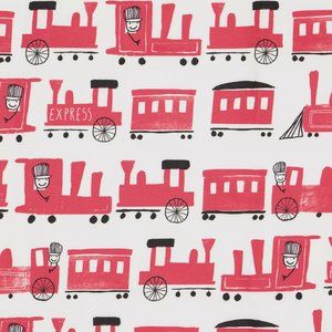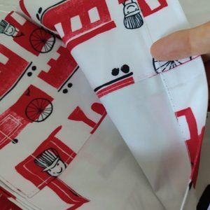 NWT. Two (2) single panels 42"W x 63"L each. Pattern is Express Train, white field with red/black graphics. These are quite dense, almost like a lined shower curtain but work well for blocking light. I have seen these referred to as "blackout" or "light filtering" although they are not labelled as such. 100% polyester, machine washable. This is such a cute pattern and sturdy fabric which could have many applications beyond curtains.