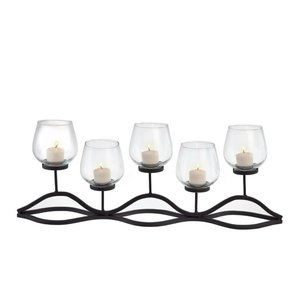 A splendidly unique lighting accent, Red Barrel Studio® 5-hurricane candelabrum combines rustic aesthetics with modern design. Handcrafted of iron and glass, this candle holder holds 5 mini pillar or votive candles. With removable glass hurricanes, it is perfect for any dining table, fireplace mantel or side table.
