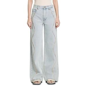 Wavy Rhinestone Stripe Jeans in Light Blue Jean
