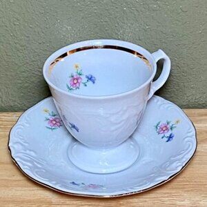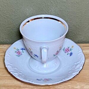 Wawel China • Floral Tea Cup & Saucer Set • Gold Trim • Made In Poland • Rare •