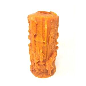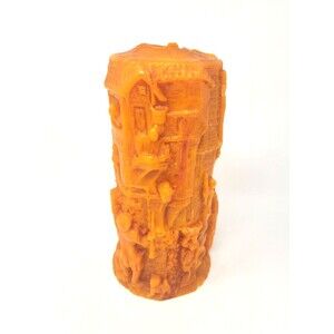 Wax Candle 9" Seasonal Autumn Decor Carved 1800's Motif Halloween Holiday Orange