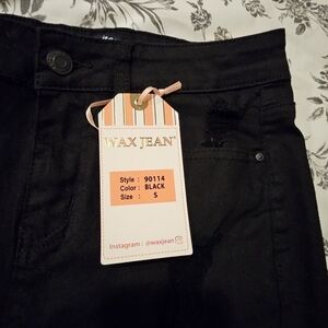 Wax Jean Black Distressed Denim Mini Skirt 98% Cotton 2% Spandex Size S