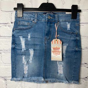 Wax Jean Casual Distressed A-Line Denim Short Skirt. New with tag, never worn. Zipper closure 5 pockets with zip up closure. 98% Cotton, 2% Spandex - lightweight soft stretchy denim material. #35 Wax Jean M