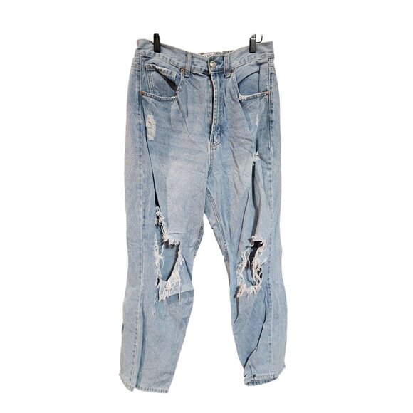 • Wax Jean Collection Distressed Light Wash Denim Jeans Elastic Waist Womens L