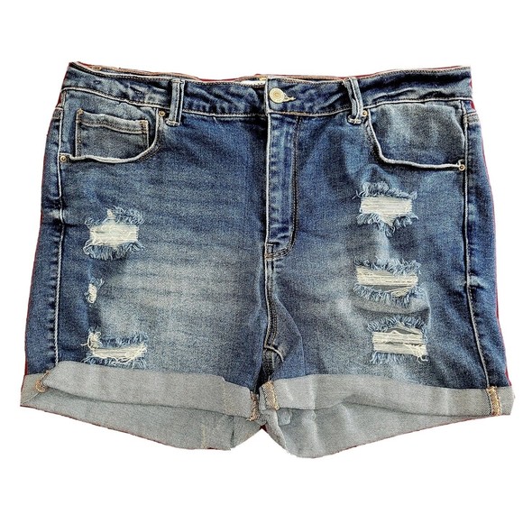 Wax Jean Collection Juniors 3XL Blue Jean Denim Stretch Booty Shorts Distress 35" Waist.