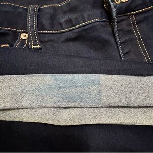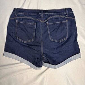 💙 Wax Jean high-rise denim shorts featuring a dark wash, rolled cuff, and classic 5-pocket design. Size tag is missing, but based on a 35" waist, these best fit a women’s size 16–18. Soft stretch denim with a comfortable fit and 3.5” inseam.