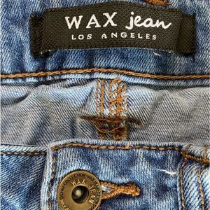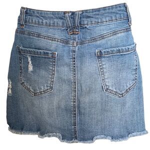 Wax Jean distressed jeans skirt in a classic blue jeans hue.