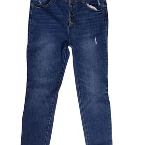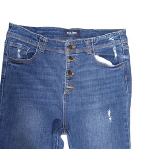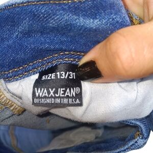 Experience the perfect blend of style and comfort with these high-rise blue jeans from Wax Jean. Featuring a classic medium-dark wash with subtle fading and a slightly distressed look, these jeans offer a modern twist on a timeless design. The denim's stretch properties ensure a flattering fit, making them an ideal choice for any casual occasion.