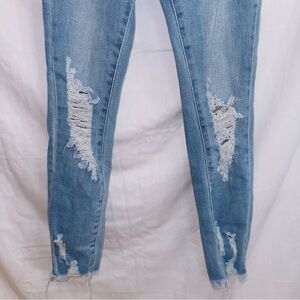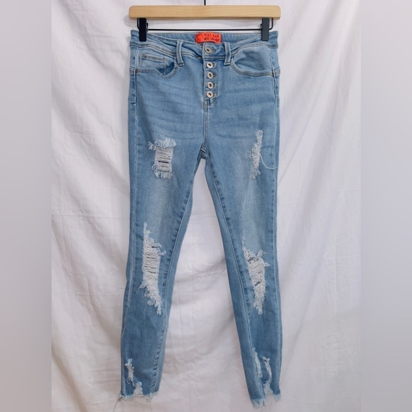 Wax Jean Light Wash Denim High Rise Button Front Distressed Skinny Jean 5/27