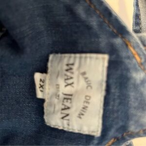 Basic Denim Wax Jean stretchy fabric and nicely distressed. Waist is 18 stretches to 21 across. Rise 11 inseam is 28.