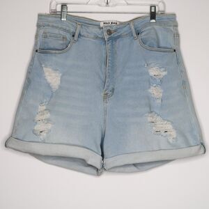 Wax Jean Shorts Size 2X Womens Light Blue Distressed Denim Mom Jeans Ripped Jean