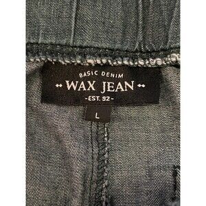 Wax Jean Shorts Womens Large Dark Blue Denim Casual Roll Cuff Drawstring Pockets