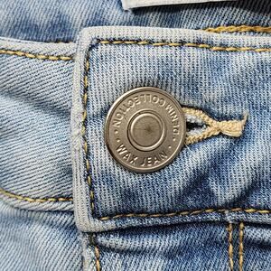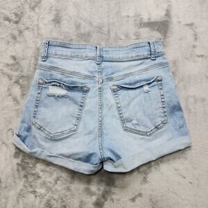 Wax Jean Shorts Womens M Blue Distressed Patch Stacked High Rise Cuffed Stretch