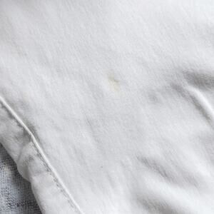 Condition is gently worn with light staining under the top button and near the back thigh (see photos). Still very wearable, great for casual looks, layering, or styling under longer tops or dusters. Style with a cropped black tee and silver jewelry for contrast that pops. Or lean into creamy neutrals and warm tones for a soft tonal palette.