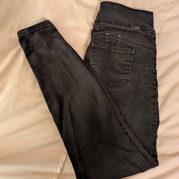 High waist black skinny jeans, butt-lifting, zipper with three buttons