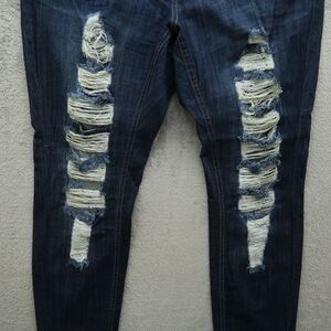 Wax Jeans Women's 18 Blue Mid-Rise Skinny Denim 29" Inseam Destroyed Stretch