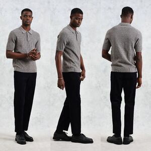 This is a beautiful, luxury polo-style sweater from Wax London's limited Fall '24 release. The Naples model is crafted from a rich cotton-cashmere blend with a unique grey marl geometric textured check knit. It's a perfect blend of a classic polo shirt with a comfortable sweater feel.
