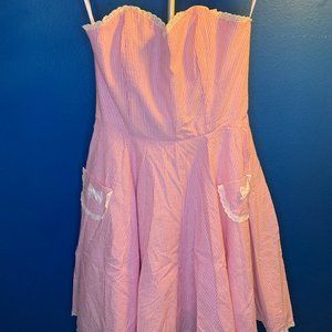 Wax Poetic Clothing Barbie Pink Striped Seersucker Sabrina Dress Size Large NWOT