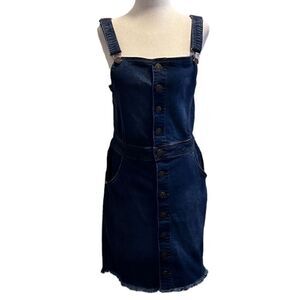 Wax Jean Small Junior Denim Dress Blue Button Front Pockets Sleeveless Overalls