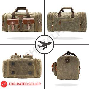 Waxed Canvas Travel Duffle Bag Waterproof Weekender Overnight Carry-On