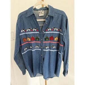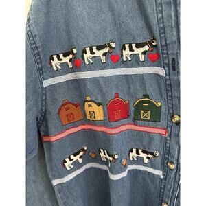 Way To Go Denim Button Up Shirt Embroidered Farm Animals Womens Medium Vintage