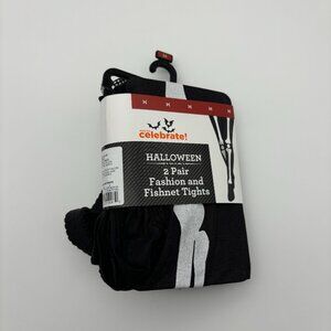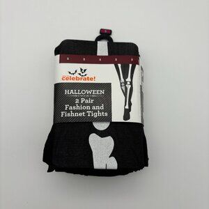 Way to Celebrate Womens Halloween 2 Pair Skeleton Fashion and Fishnet Tights NEW