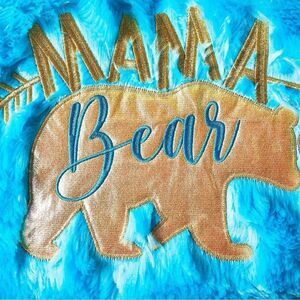 This Way to Celebrate Mothers Day plush pillow is a unique and festive gift for any mom. The heart-shaped pillow is made of soft polyester fabric and polyester fiber stuffing, measuring 19in L x 5in W x 15in H. It features "MAMA BEAR" embroidered on the front and comes in a blue color. Ideal for placement on a couch, bed, or chair, this pillow is a thoughtful way to celebrate Mother's Day.